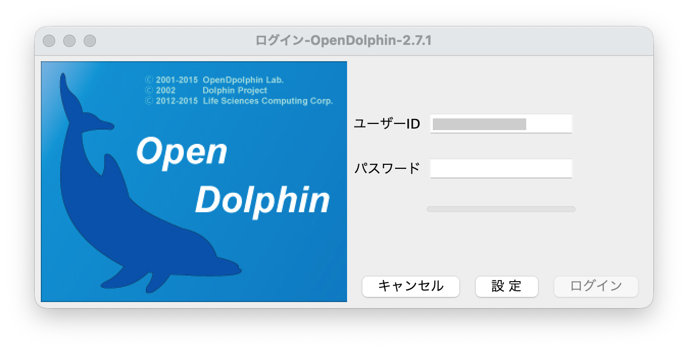 (ログイン画面などでは (C) OpenDolphin Lab と (C) Life Sciences Cmputing が併記され、一致していない)