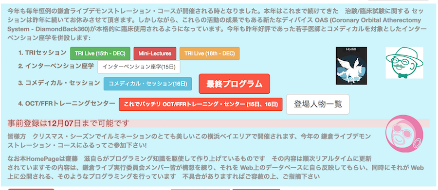 日頃からお世話になっている湘南鎌倉総合病院の斎藤滋先生主催の「鎌倉ライブ」が今年も 12/15-16 横浜にて開催されます。