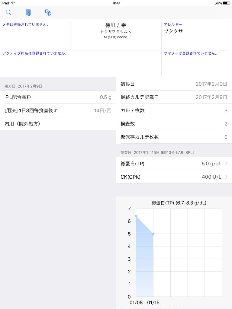 せっかくなので SuperEHRTouch というアプリを iPad にインストール、上記のサーバにつないでみましょう。