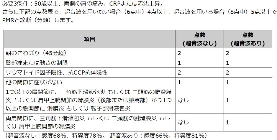 ちなみにリウマチ性多発筋痛症の診断基準の一つは ↓ です。慶応大学病院の HP からお借りしてきました。